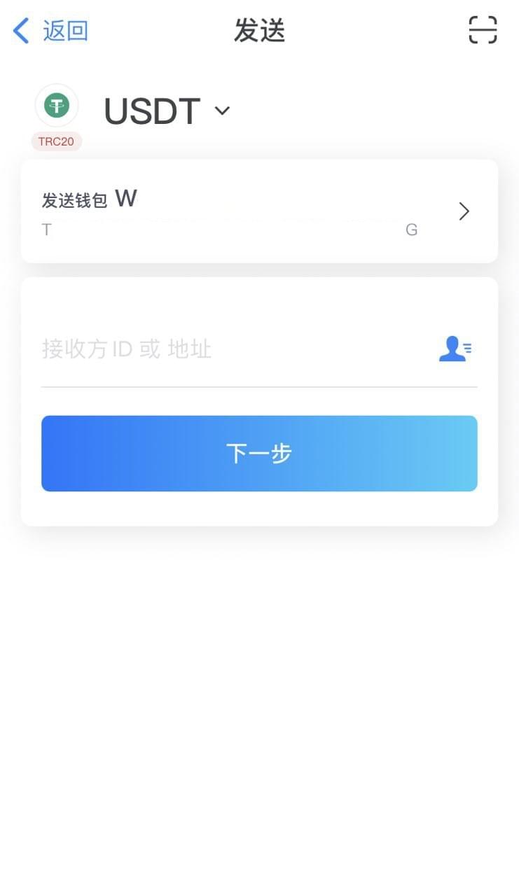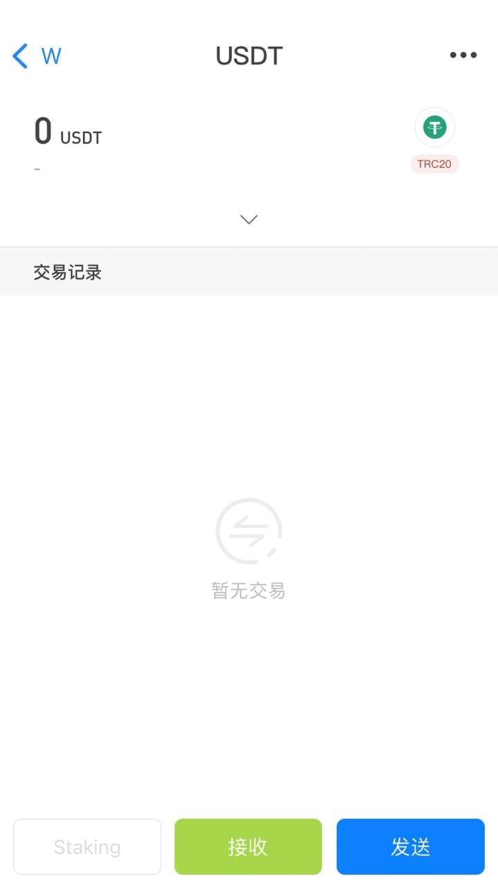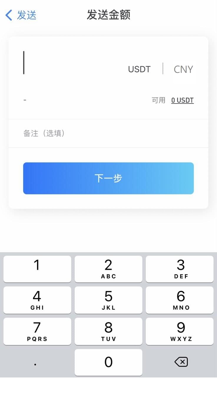 6.选择USDT进行USDT转帐,点击发送。【右上USDT的图示,会显示您的TRC20的资讯。】