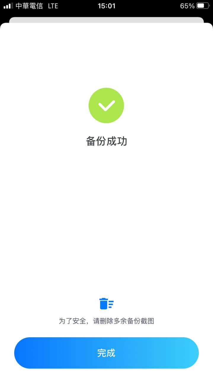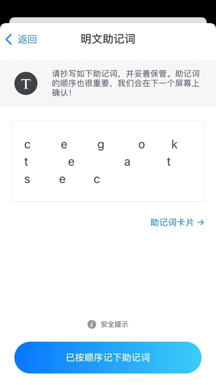 4.备份钱包,点击明文助记词,记住顺序,点击下一步,依序输入完毕。