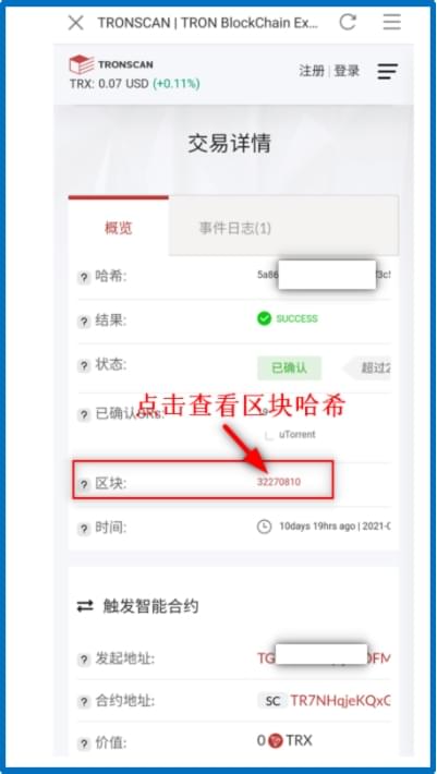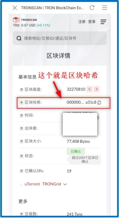 8.进入区块交易详情,点击区块旁的数字,会出现基本信息。
