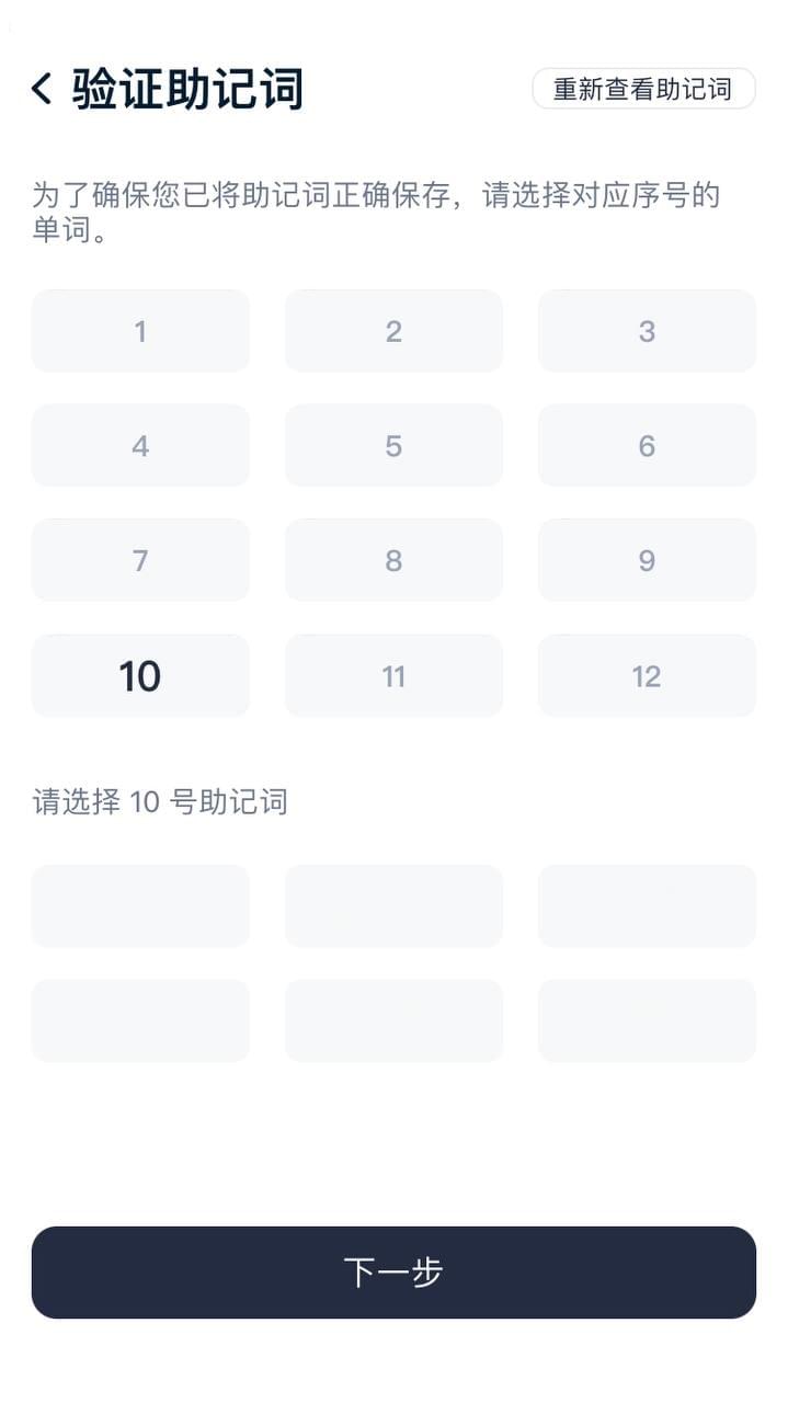 4.请记得注记词的顺序,开始验证,验证部分会是随机抽取12个的其中三个词。