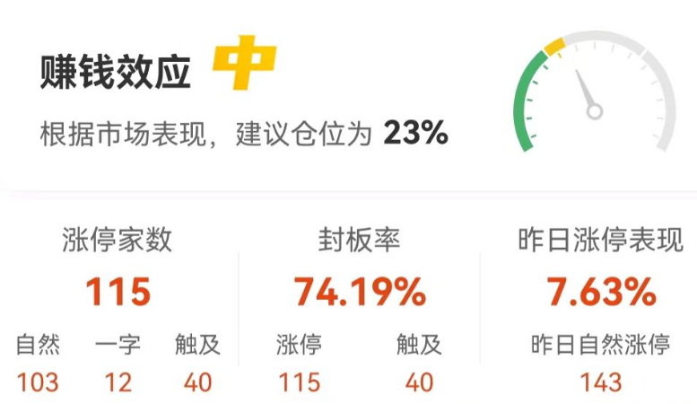 115股涨停 封板率74.19%