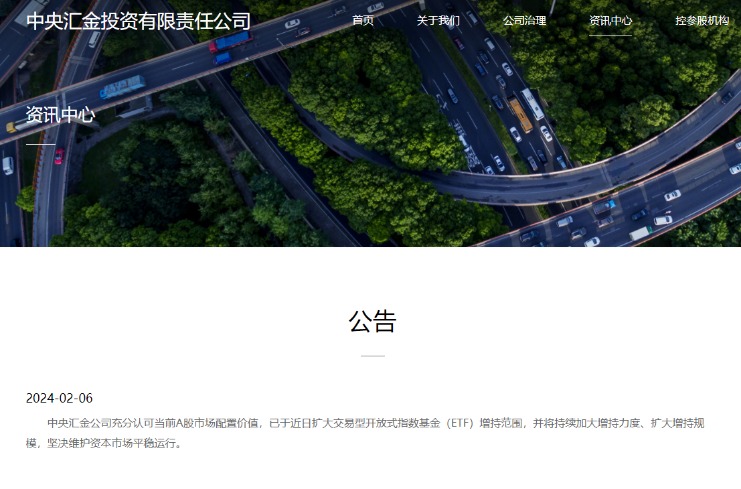 2月6日,中央汇金发布公告称,中央汇金公司充分认可当前A股市场配置价值,已于近日扩大交易型开放式指数基金(ETF)增持范围,并将持续加大增持力度、扩大增持规模,坚决维护资本市场平稳运行。